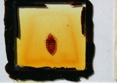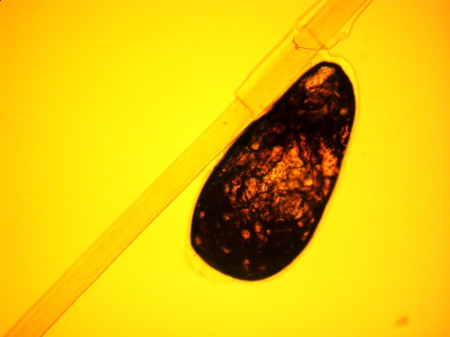 Členonožci: Pediculus humanus capitis ‒ jajčece (gnida) (1 mm)