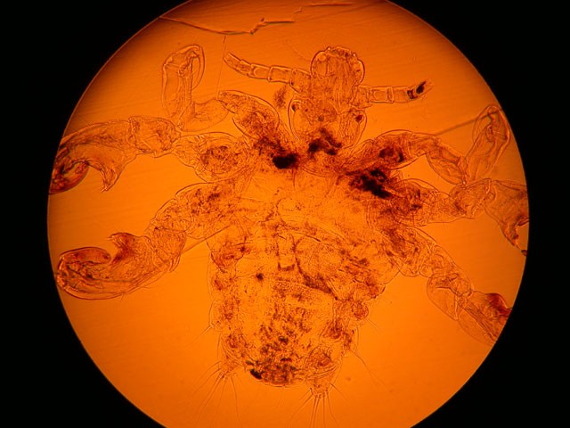 Členonožci: Pediculus humanus capitis ‒ odrasla uš (1,5 mm)