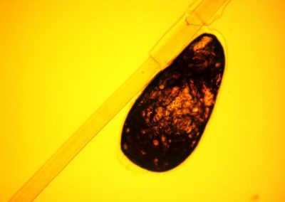 Helminti: Trichuris trichiura ‒ jajčece gliste v iztrebku, Lugol (50×25 µm)