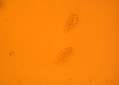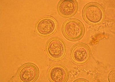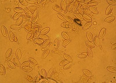 Helminti: Taenia spp. ‒ jajčeca (40×30 µm)