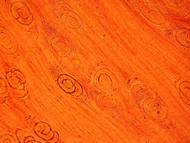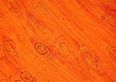Helminti: Trichinella spiralis ‒ ličinka gliste lasnice v mišici (400 µm)