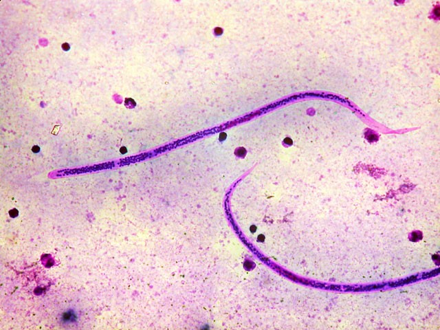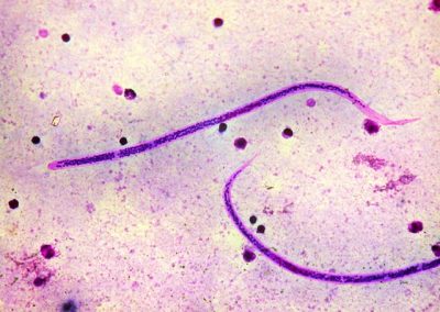 Helminti: Wuchereria bancrofti ‒ mikrofilarija filarije v krvi, Giemsa (240‒300 µm)