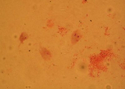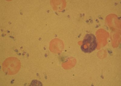 Praživali: Leishmania spp. ‒ amastigotna oblika v razmazu kostnega mozga, Giemsa (4×2 µm)